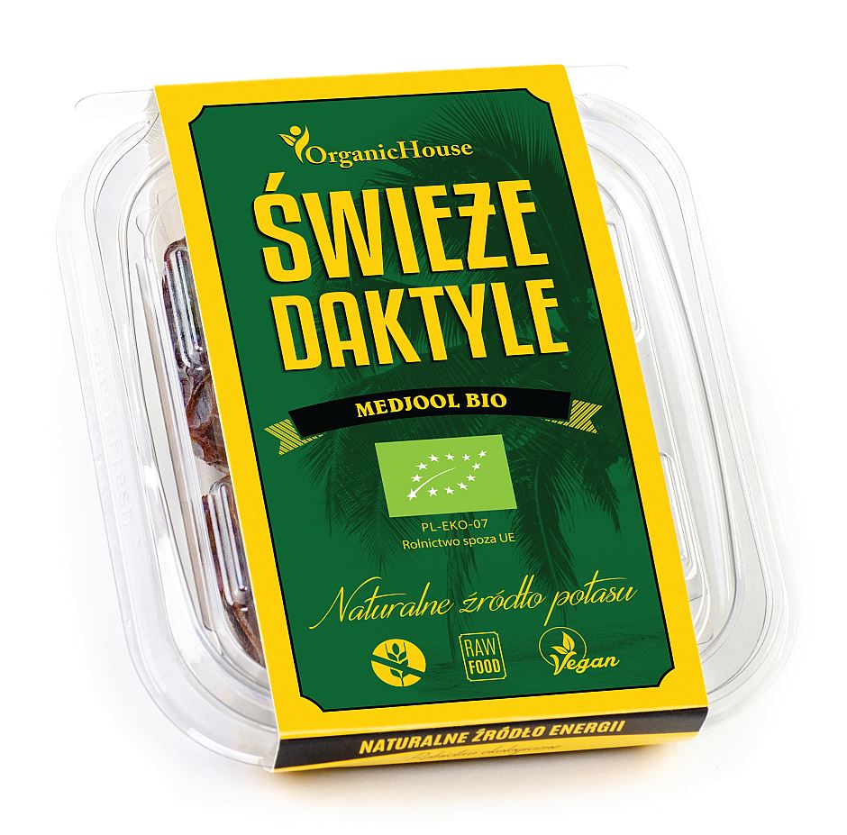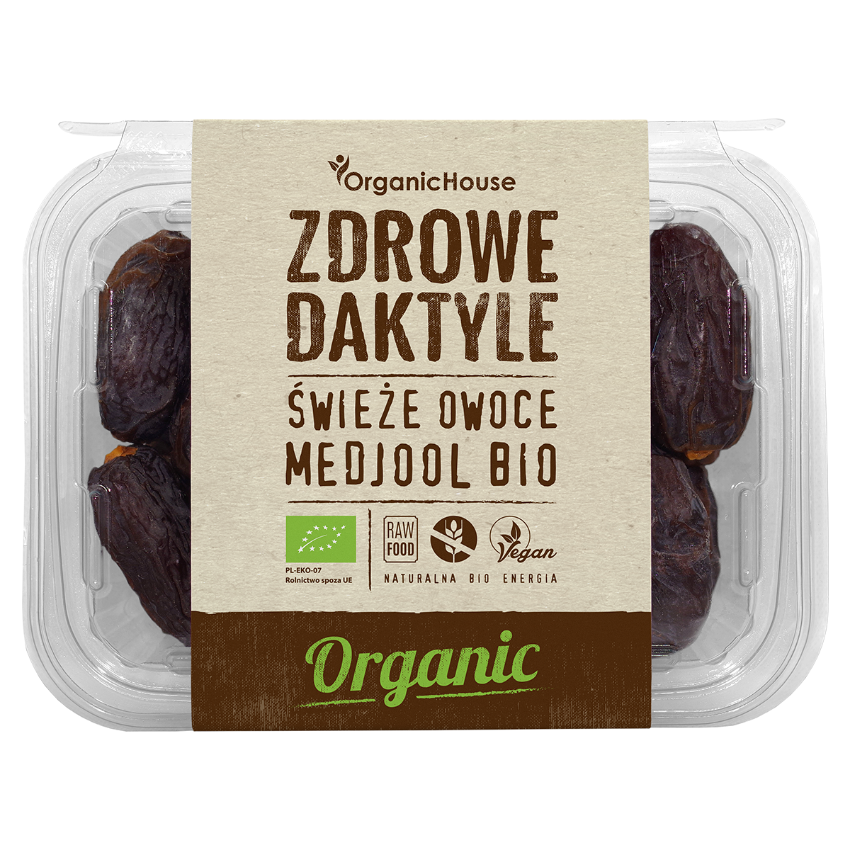 Świeże ZDROWE daktyle MEDJOOL BIO z logo OrganicHouse:
